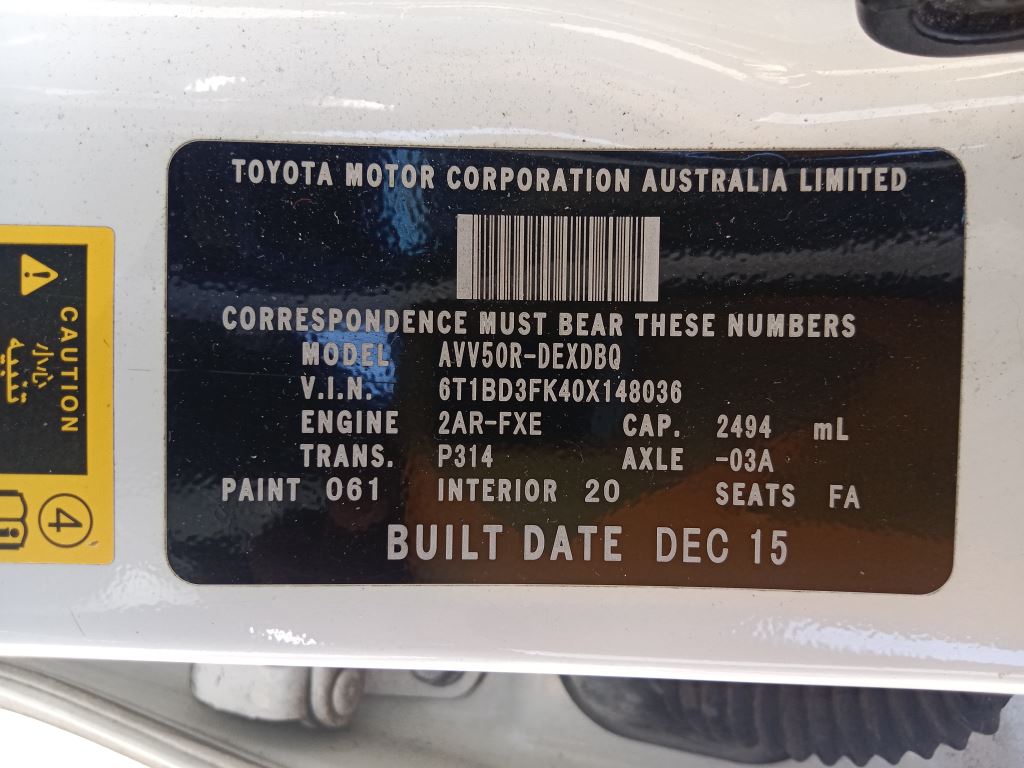 P5311 – Toyota Camry Hybrid 2016 White Wrecking