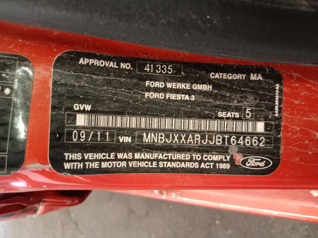P5393 – Ford Fiesta 2011 orange Wrecking