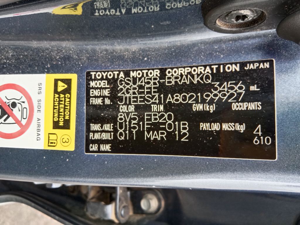 P5436 – Toyota Kluger 2012 Grey Wrecking
